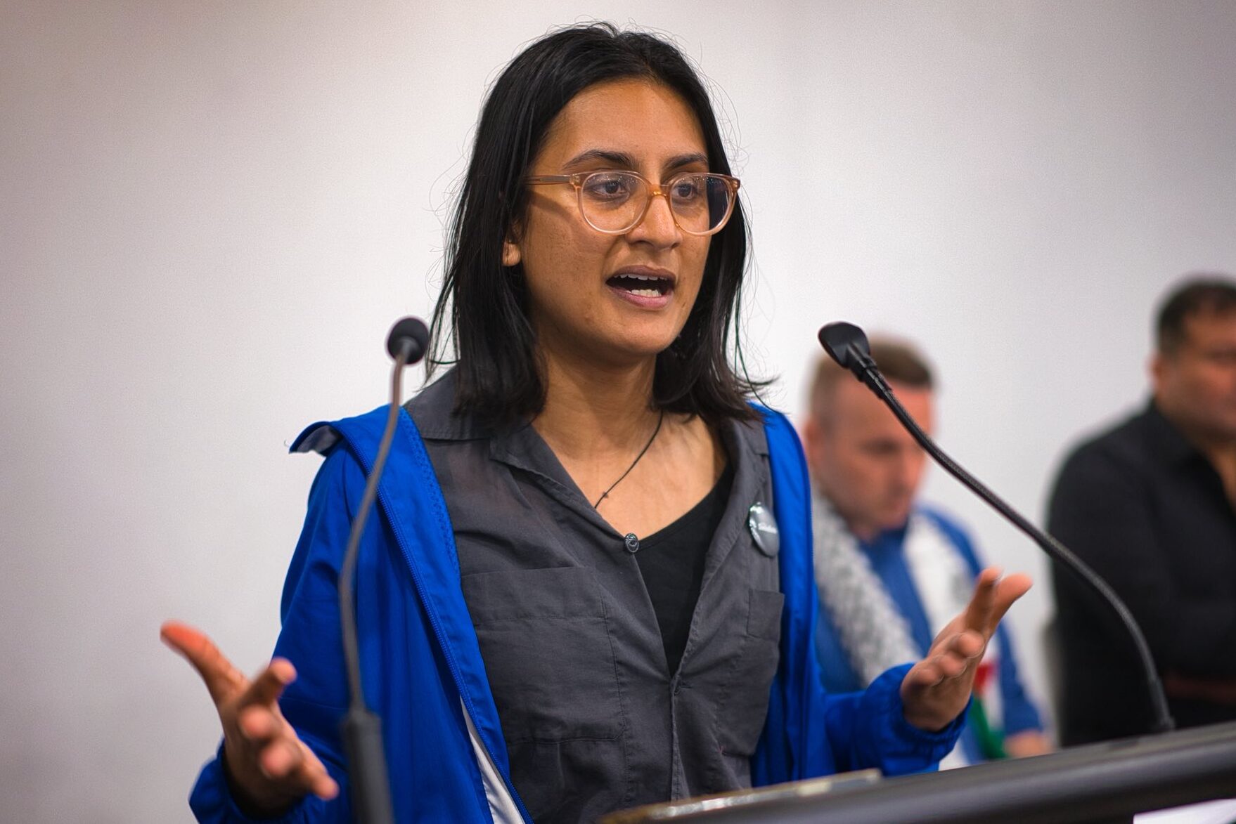 Unsurprisingly, in the first round of voting, Socialist Alternative candidate Shovan Bhattarai won with 42 votes. Tim Alouani–Roby received 37 votes and Tony Nolan received 7 votes. (In the first round, members could vote for more than one candidate. Voting was by a show of hands.) In the run-off ballot (also by a show of hands), comrade Bhattarai won with overwhelming support.