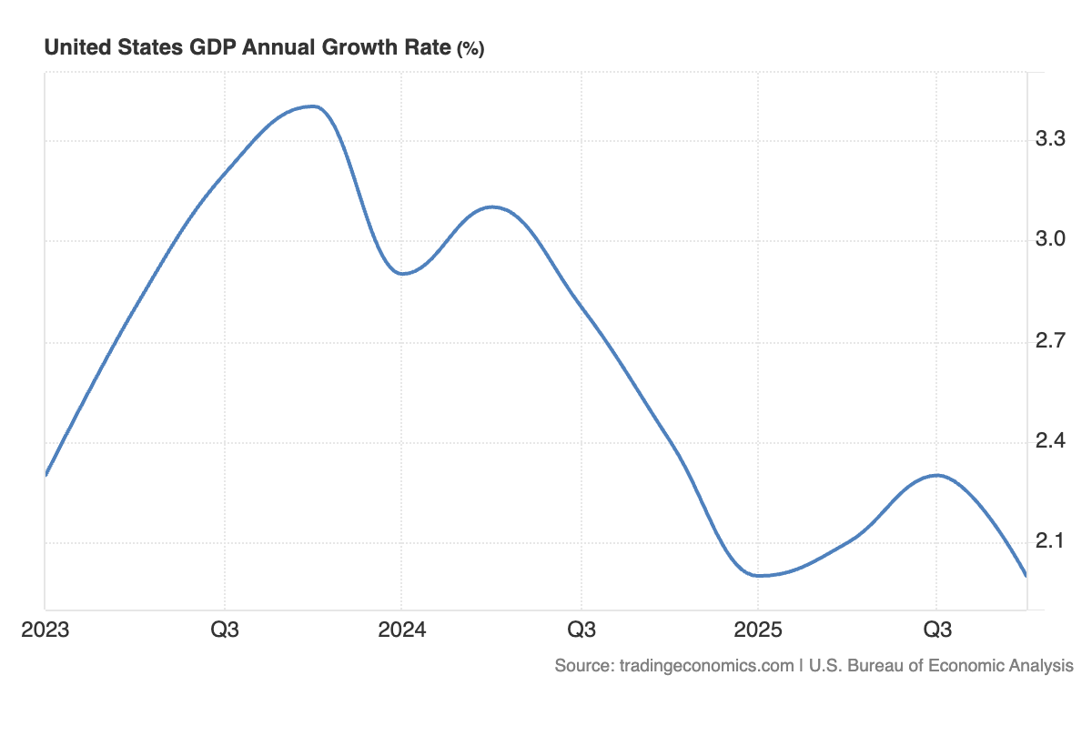 Slowing growth in national output is now also accompanied by falling employment growth. In January, the US economy lost 92,000 jobs. Job openings in the professional and business services sector have fallen to just 4.0 per 100 employees, the lowest since the 2020 pandemic slump and down nearly 60% since the peak of white-collar employment in 2022. When white-collar hiring slows this sharply, the rest of the job market usually follows.