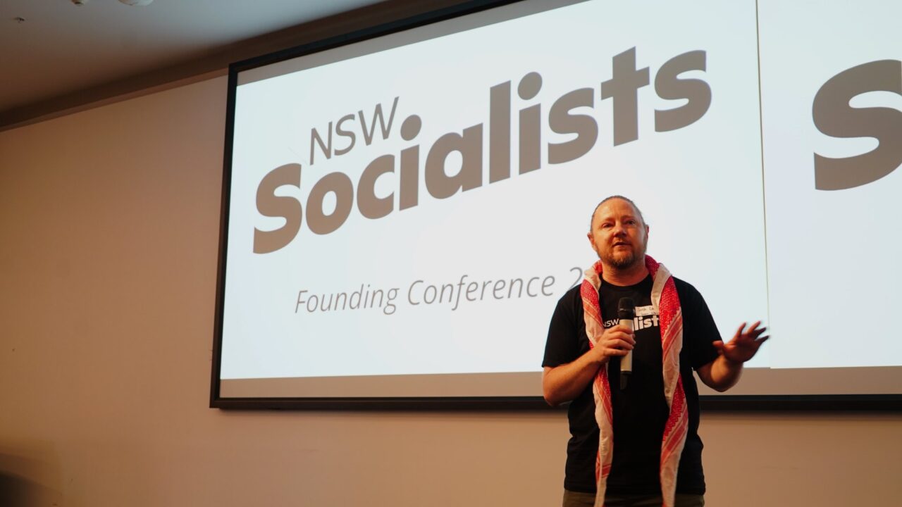 Josh Lees – a member of the dominant Socialist Alternative faction – speaks at the NSW Socialists founding conference.