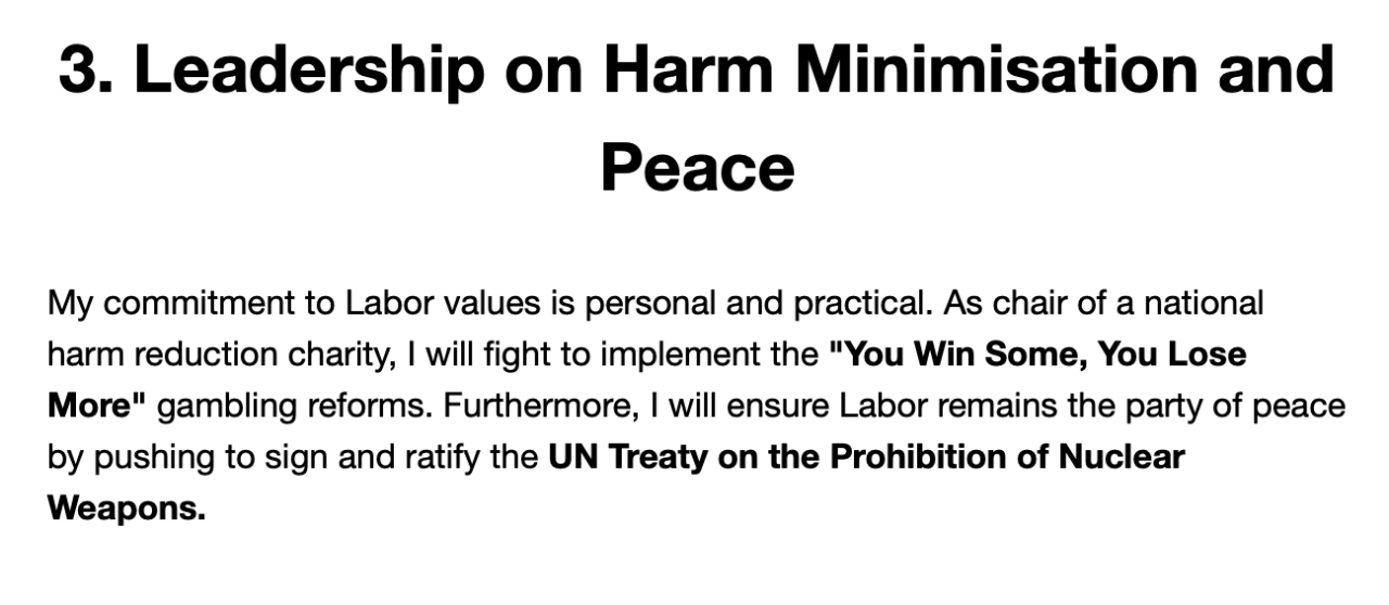 Her first emails did not mention AUKUS at all but included banal generalities about ‘peace’ and urging the government to sign the Treaty for the Prohibition of Nuclear Weapons. It is already ALP policy to sign this treaty and in debates at branches, I made the point that AUKUS was the main obstacle preventing the ALP in government carrying out party policy to sign the treaty.